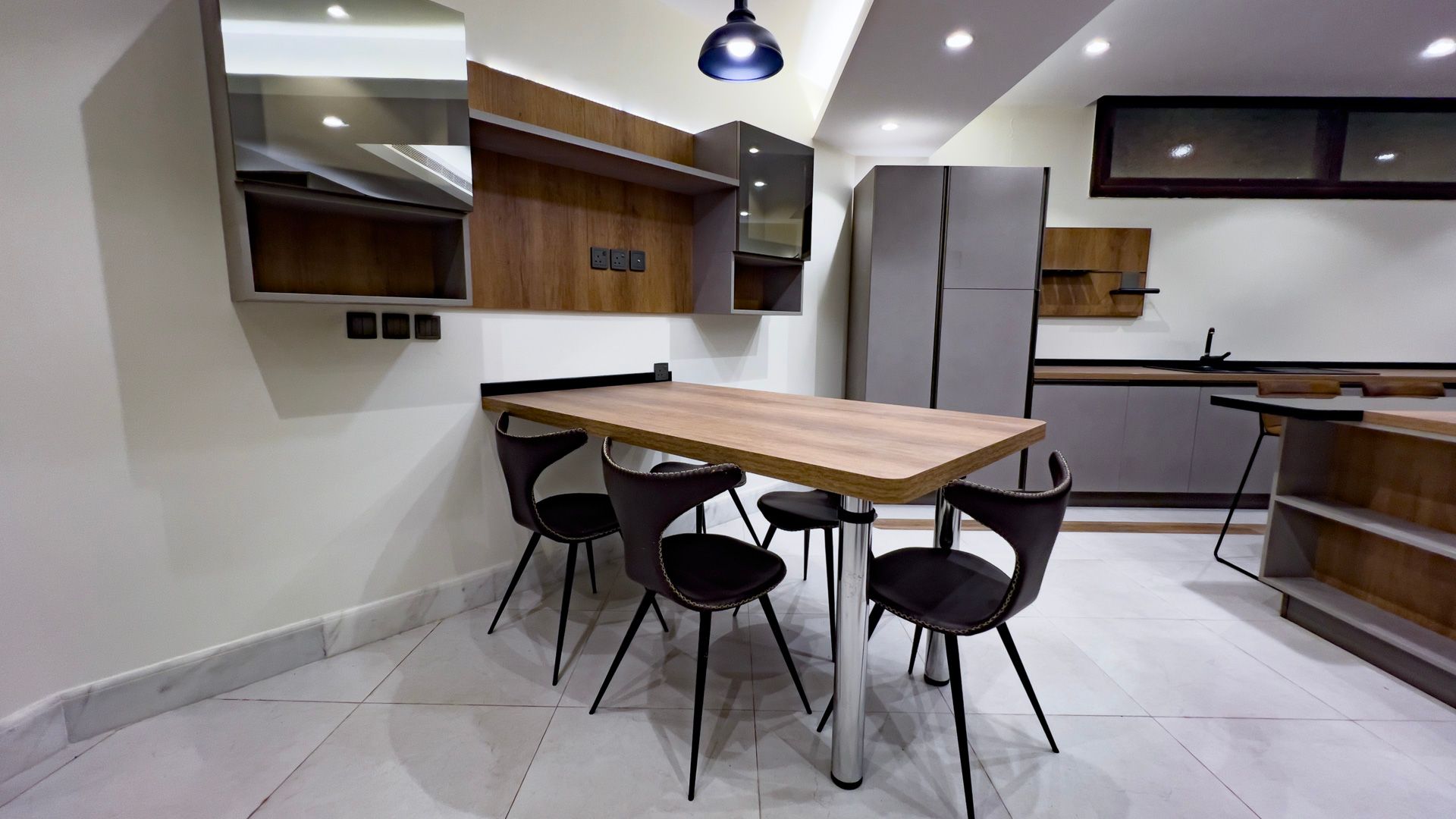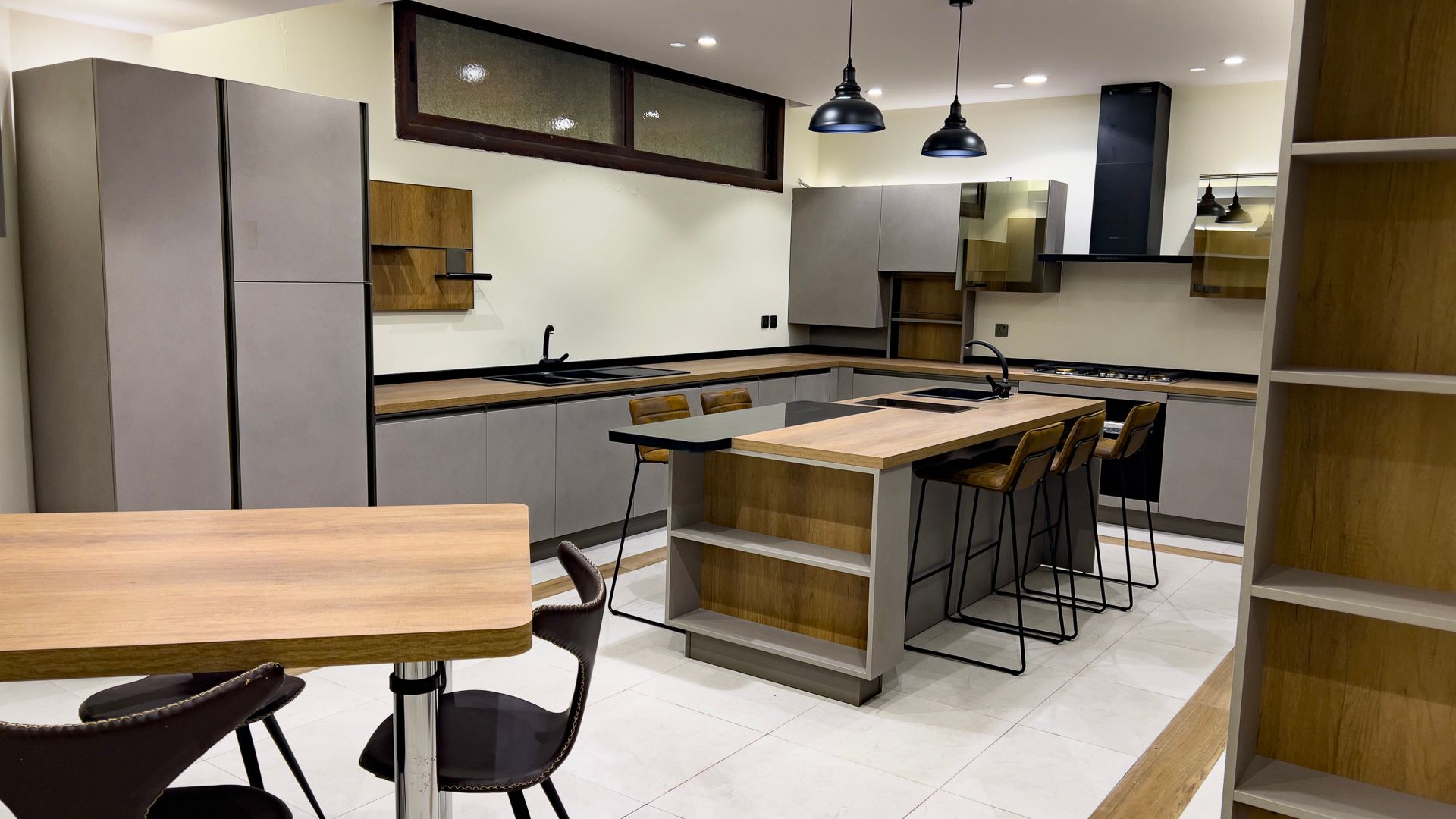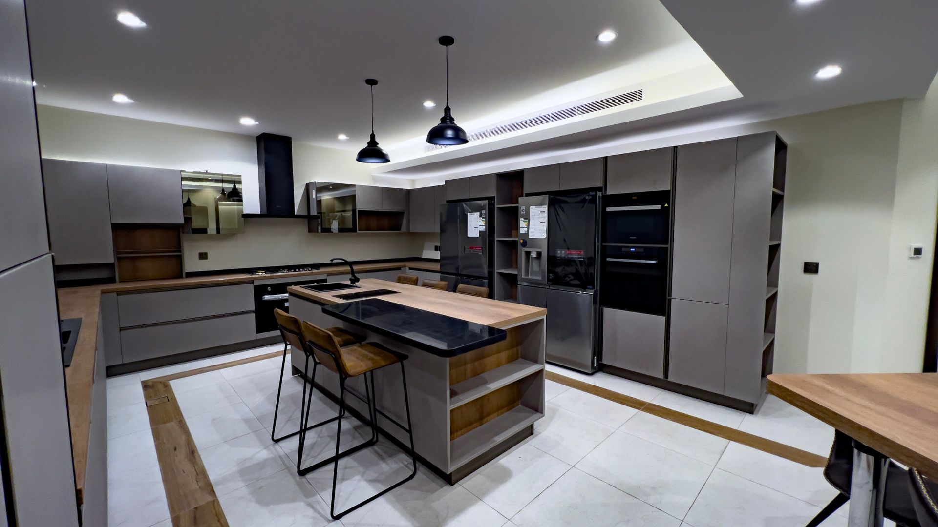 - Fully Equipped Luxury Kitchen with the latest appliances, high-quality wooden cabinets, and an island table providing ample cooking and seating space.