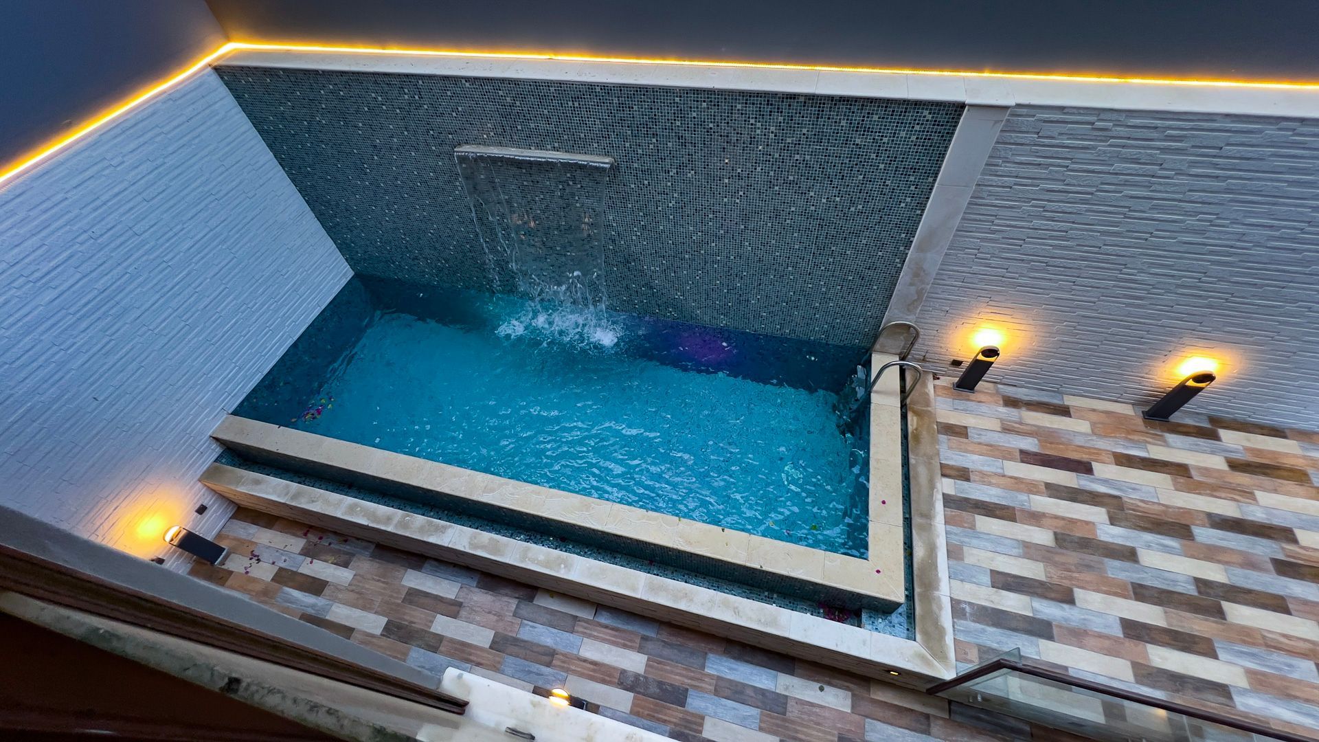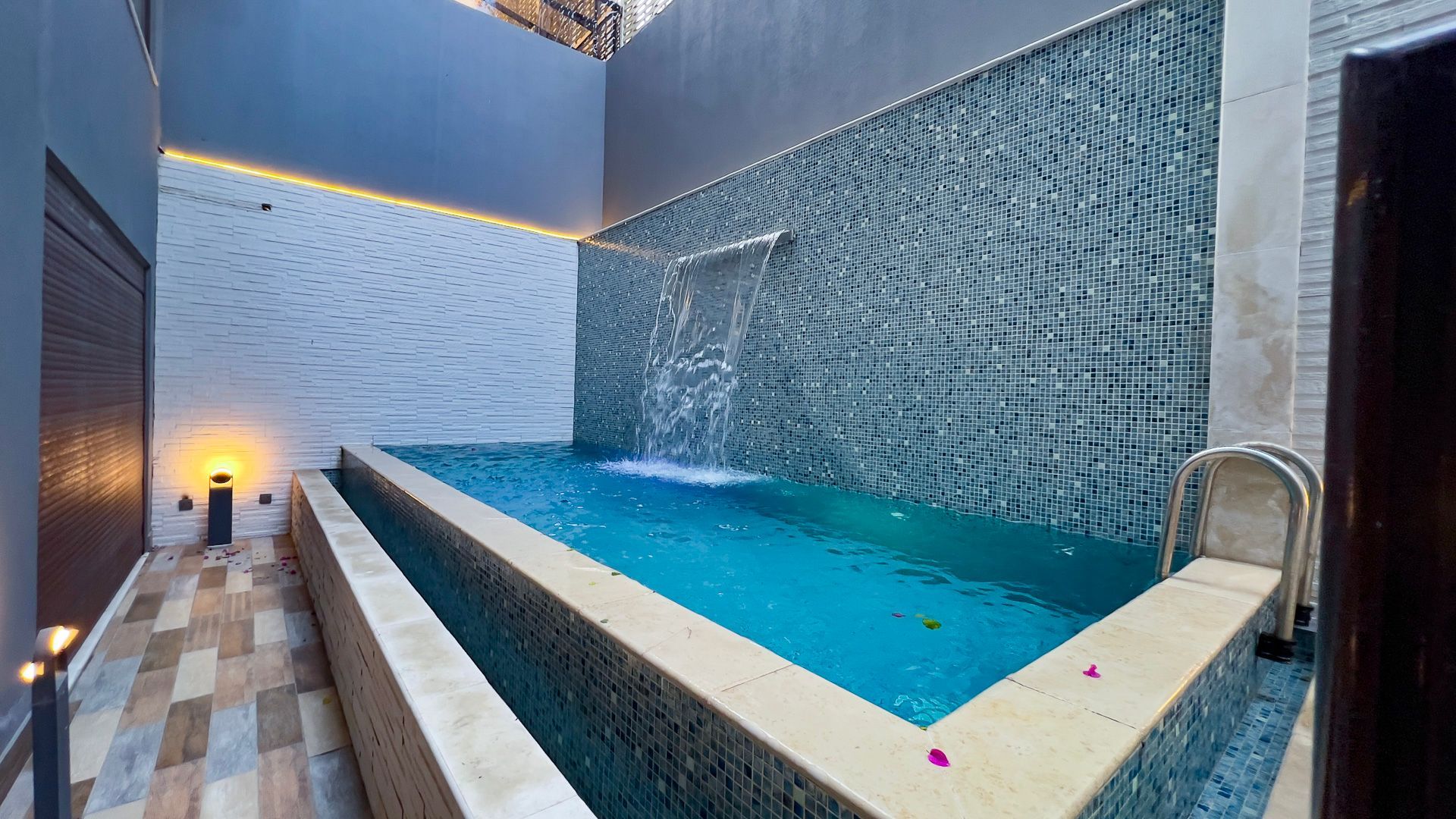 - Outdoor Swimming Pool with a waterfall, creating a relaxing atmosphere.