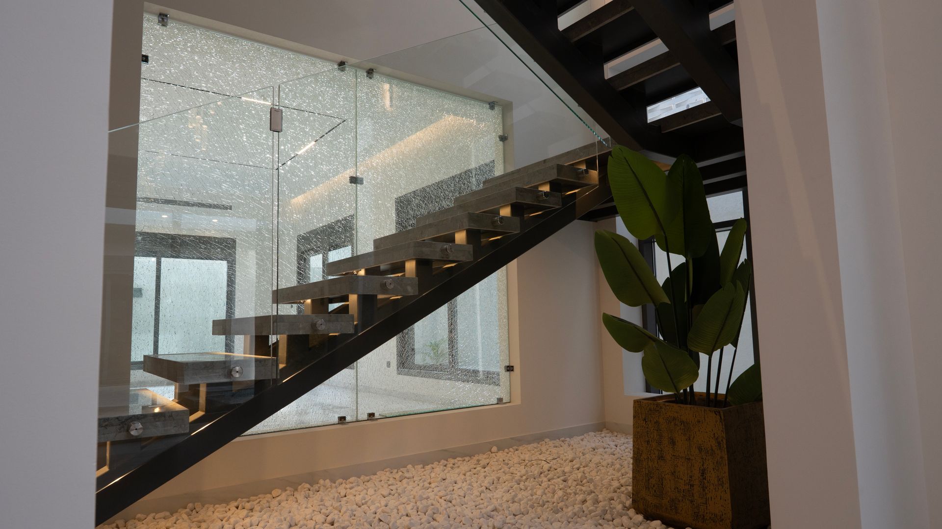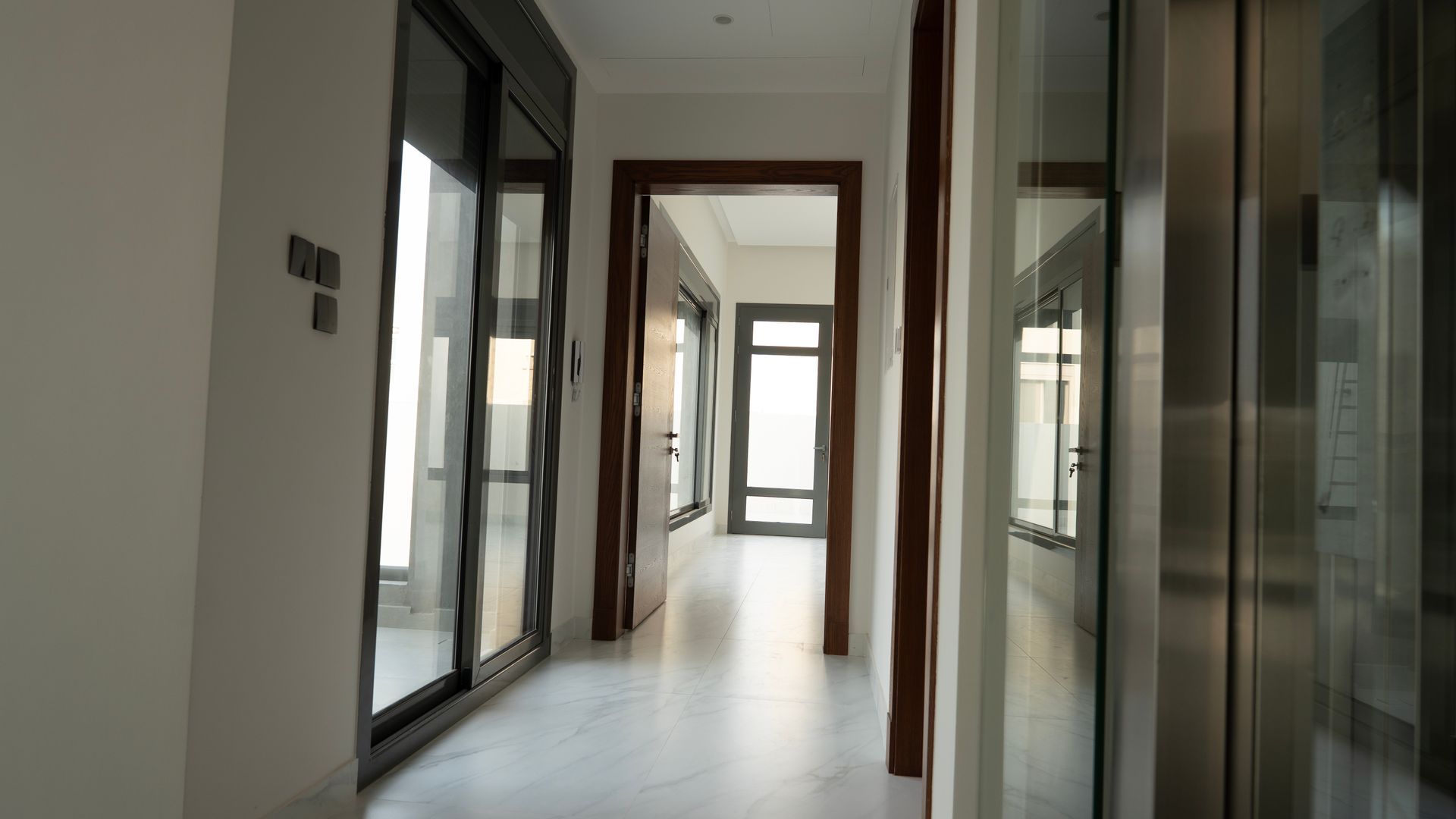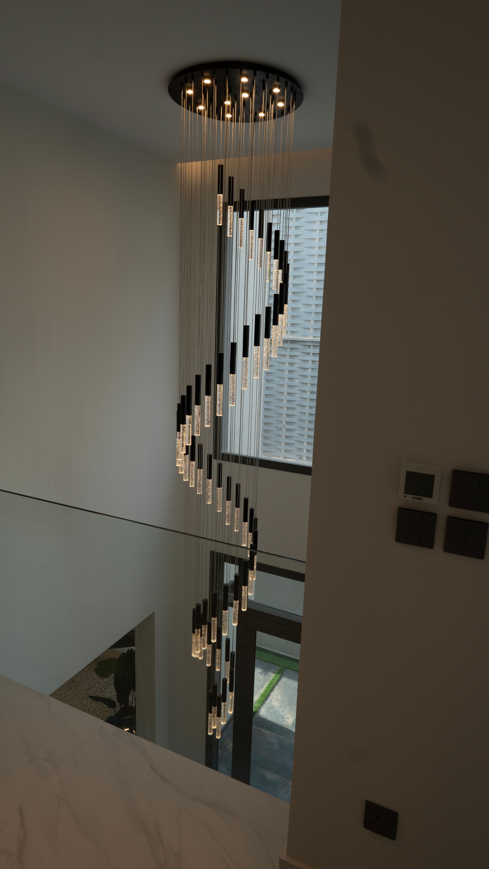 - Luxurious glass elevator with an interior view on all floors